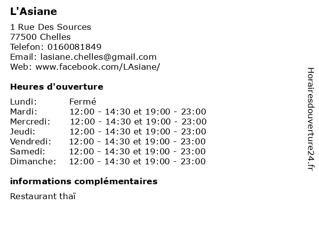 | Dimanche | 12:00-14:30 et 19:00-23:00 |
