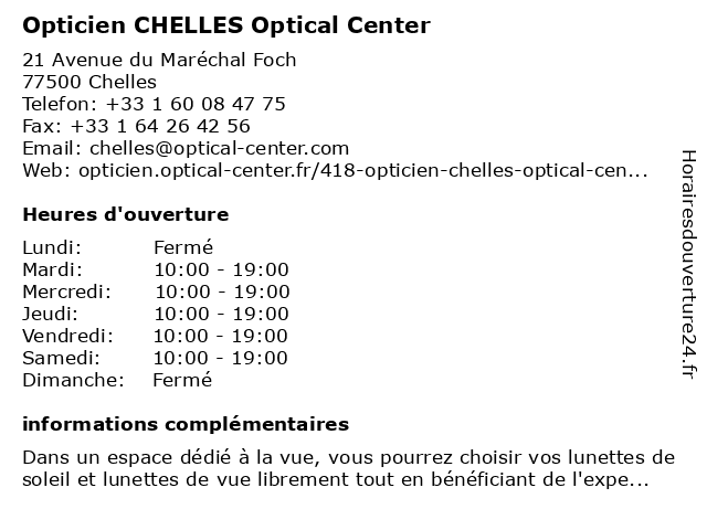 Termes de recherche pour Opticien CHELLES Optical Center:center, opticien, optical, chelles |