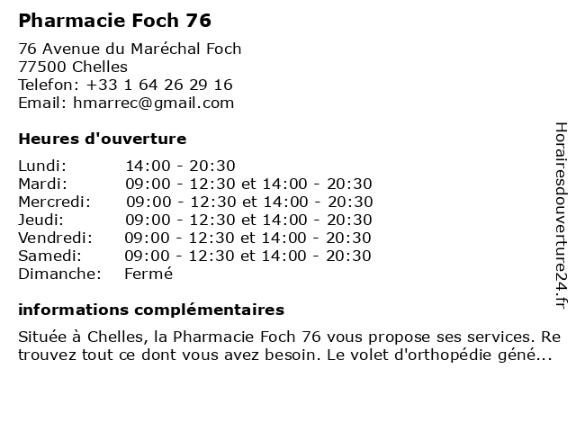| Mardi | 09:00-12:30 et 14:00-20:30 |