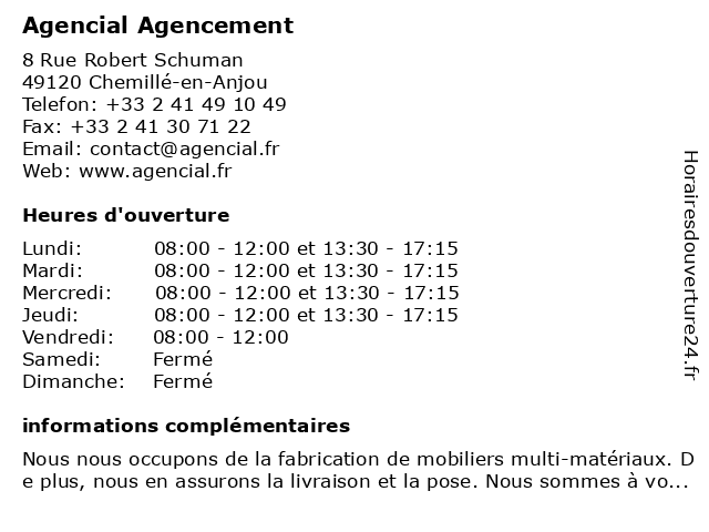 | Lundi | 08:00-12:00 et 13:30-17:15 |