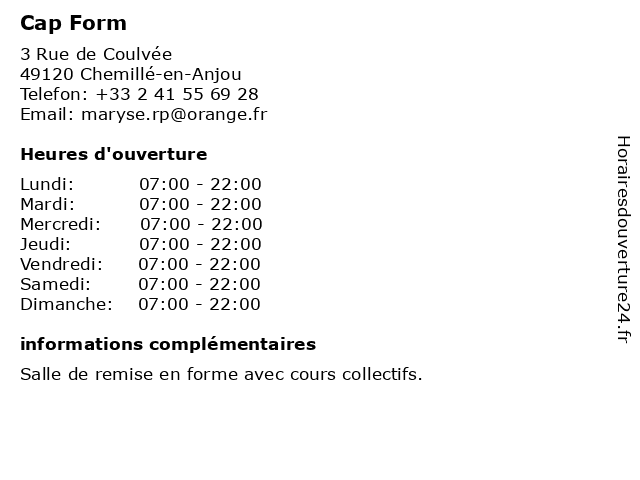 1 Wake Up Form - Accès Membres (Distance: 18,52 km) 88 rue de Bourgneuf - L'Autre Usine, 49300 Cholet accès, activités, club, coachs, fitness, form, la, membres, salle, sport, up, wake 2 Wake Up Form - Accueil (Distance: 18,52 km) 88 rue de Bourgneuf - L'Autre Usine, 49300 Cholet accueil, activités, club, coachs, fitness, form, sport, up, wake 4 San 'T Form Fitness & Spa (Distance: 19,94 km) 4 Rue du Gâtineau, 49110 Montrevault-sur-Èvre 't, fitness, form, san, spa 5 Les Jardins de l'Anjou - Village Vacance CAP France (Distance: 20,18 km) 9 chemin du Vaujou, 49620 La Pommeraye cap, de, france, hebergement, hotel, jardins, l'anjou, les, loisirs, tourisme, vacance, vacances, village 6 |