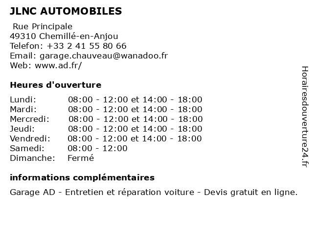 Lundi | 08:00-12:00 et 14:00-18:00 |
