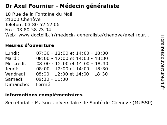 | Lundi | 07:30-12:00 et 14:00-18:30 |