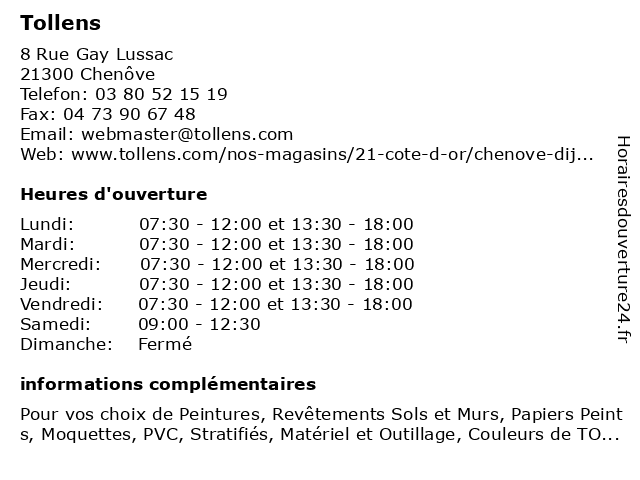 | Lundi | 07:30-12:00 et 13:30-18:00 |