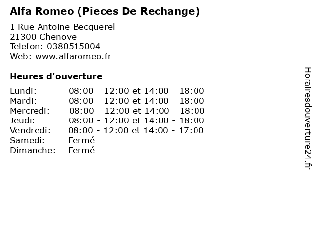 1 Alfa Romeo (Atelier) (Distance: 0,00 km) 1 Rue Antoine Becquerel, 21300 Chenove alfa, atelier, automobiles, concessionnaire, garage, motos, romeo 2 Alfa Romeo (Distance: 0,00 km) 1 Rue Antoine Becquerel, 21300 Chenove alfa, automobiles, concessionnaire, garage, motos, romeo 3 Citroën Chenôve (Magasin pièces de rechange) (Distance: 0,71 km) 5 rue des Frères Montgolfier, 21300 Chenôve chenôve, citroën, de, magasin, pièces, rechange, services, véhicules 4 Pieces iPhone (Distance: 1,49 km) 4 rue de la paulée, 21300 Chenôve iphone, pieces, pieces-iphone, portable, réparation, réseau 5 Fiat (Pieces De Rechange) (Distance: 1,63 km) 24 Rue des Ateliers, 21000 Dijon automobiles, concéssionnaire, de, fiat, garage, motos, pieces, rechange 6 Citroën Dijon (Magasin pièces de rechange) (Distance: 6,24 km) s/n Place Saint Exupery, 21000 Dijon citroën, de, dijon, magasin, pièces, rechange, services, véhicules |