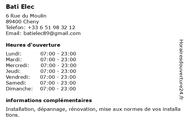 Mercredi | 07:00-23:00 |