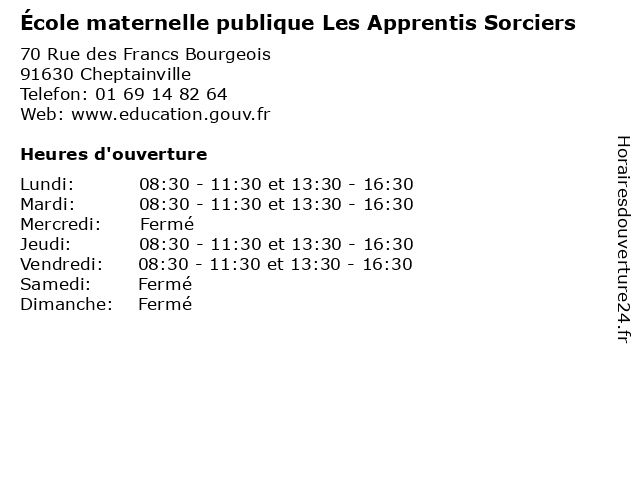 | Mardi | 08:30-11:30 et 13:30-16:30 |