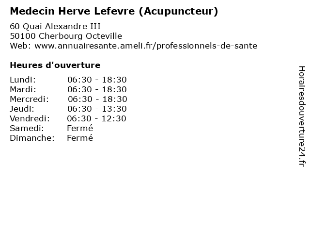 | Mercredi | 06:30-18:30 |