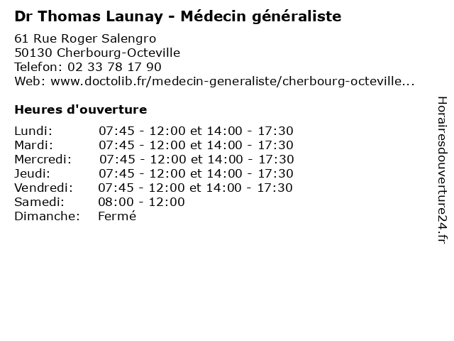 | Lundi | 07:45-12:00 et 14:00-17:30 |