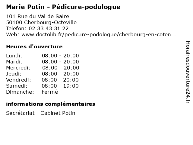 1 Elena Dijoux - Pédicure-podologue (Distance: 0,00 km) 101 Rue du Val de Saire, 50100 Cherbourg-Octeville cheville, dijoux, elena, orteil, pied, podologue, pédicure 2 Valerian Chapon - Pédicure-podologue (Distance: 0,00 km) 101 Rue du Val de Saire, 50100 Cherbourg-Octeville chapon, consultation, docteur, med, médecin, podologue, pédicure, traitement, valerian 3 Constance Robert - Pédicure-podologue (Distance: 0,00 km) 101 Rue du Val de Saire, 50100 Cherbourg-Octeville constance, consultation, docteur, med, médecin, podologue, pédicure, robert, traitement 4 Tanguy Morvan - Pédicure-podologue (Distance: 2,64 km) 63 Rue Gambetta, 50120 Cherbourg-en-Cotentin cheville, morvan, orteil, pied, podologue, pédicure, tanguy 5 Morgane Sousa - Pédicure-podologue (Distance: 5,09 km) 87 L'Oraille, 50690 Martinvast morgane, orthoplastie, podologue, pédicure, pédicurie, sousa 6 Robin Massé - Pédicure-podologue (Distance: 5,99 km) 17 Rue Maurice Brisset, 50690 Martinvast cheville, massé, orteil, pied, podologue, pédicure, robin |