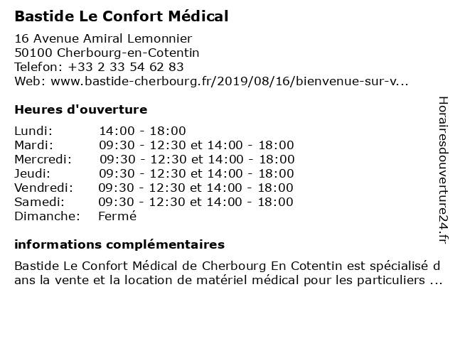 | Mardi | 09:30-12:30 et 14:00-18:00 |