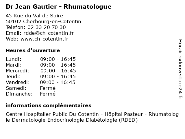 1 Dr Thierry Colin - Rhumatologue (Distance: 0,00 km) 45 Rue du Val de Saire, 50102 Cherbourg-en-Cotentin colin, consultation, docteur, dr, med, médecin, médecine, rhumatologue, thierry, traitement 2 Dr Eric Le Gangneux - Rhumatologue (Distance: 0,00 km) 45 Rue du Val de Saire, 50102 Cherbourg-en-Cotentin consultation, docteur, dr, eric, gangneux, le, med, médecin, médecine, rhumatologue, traitement 3 La Guinguette (Distance: 23,80 km) 7 Route de Barfleur, 50760 Anneville-en-Saire cartigny, fernande, gautier, guinguette, la, maryline, restaurants 4 Basset Gautier Sonia (Distance: 28,80 km) Madame Sonia Gautier, 50270 Les Moitiers D Allonne basset, gautier, restaurants, sonia 6 Marché Jean Moulin à Cherbourg-Octeville (Distance: 2,66 km) . Place Jean Moulin, 50100 Cherbourg-Octeville cherbourg, frutas, hortalizas, jean, marché, mercado, moulin, octeville, verduras |