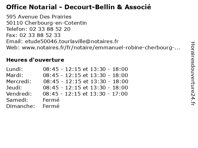 | Lundi | 08:45-12:15 et 13:30-18:00 |