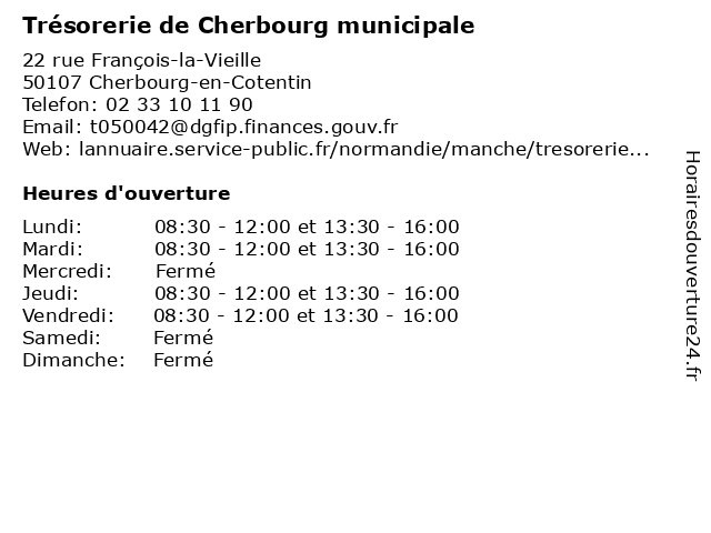 Termes de recherche pour Trésorerie de Cherbourg municipale:de, cherbourg, trésorerie, municipale, cherbourg-en-cotentin |