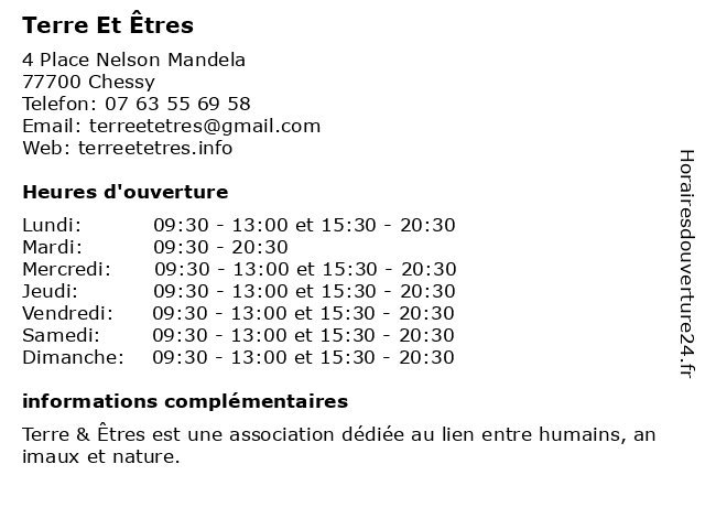 | Lundi | 09:30-13:00 et 15:30-20:30 |