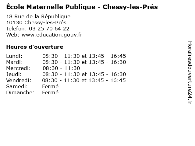 | Mardi | 08:30-11:30 et 13:45-16:30 |