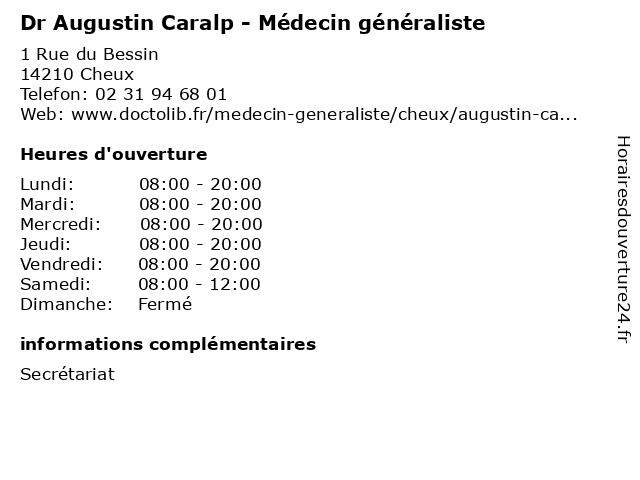 1 Boucherie Saint Augustin (Distance: 47,90 km) 123 Avenue De La Republique, 14800 Deauville augustin, boucherie, boucheries, christian, lagouche, poissonneries, saint 2 Boulangerie Pâtisserie Saint Augustin (Distance: 47,91 km) 176 Avenue de la République, 14800 Deauville alimentation, augustin, baguette, boulangerie, commerce, deauville, gâteaux, pain, pâtisserie, saint 3 Dr Antoine Augustin - Anatomo-cyto-pathologiste (Distance: 56,81 km) 175 Rue Roger Aini, 14100 Lisieux anatomo, antoine, augustin, consultation, cyto, docteur, dr, med, médecin, pathologiste, traitement 4 Dr Jean-Marc Couet - Médecin généraliste (Distance: 0,00 km) 1 Rue du Bessin, 14210 Thue et Mue couet, docteur, dr, generaliste, généraliste, jean, marc, medical, médecin, soin 5 Etablissement Francais Du Sang (Distance: 10,28 km) 1 place de la Mairie, 14000 Caen blood donations, du, etablissement, francais, hospital, medical, office, practical advice, sang 6 cabinet medical - Médecine générale (secrétariat ) (Distance: 11,04 km) 2 p;ace de wurzburg, 14000 Caen cabinet, consultation, docteur, générale, medical, médecine, santé, secrétariat |