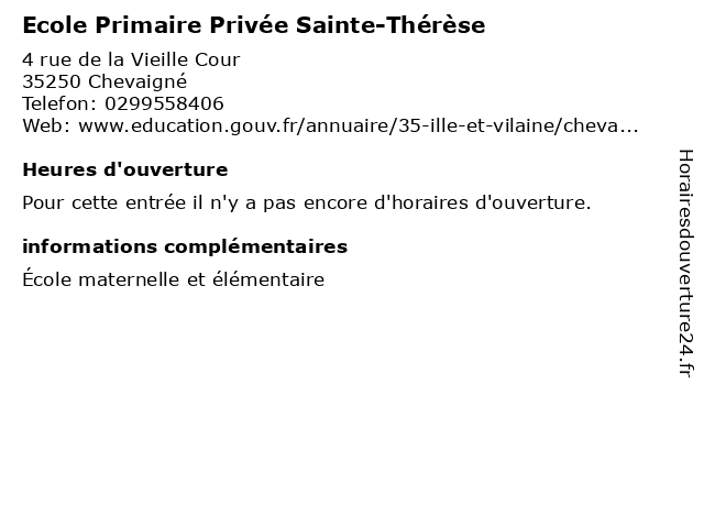 | Appeler Ecole Primaire Privée Sainte-Thérèse | |