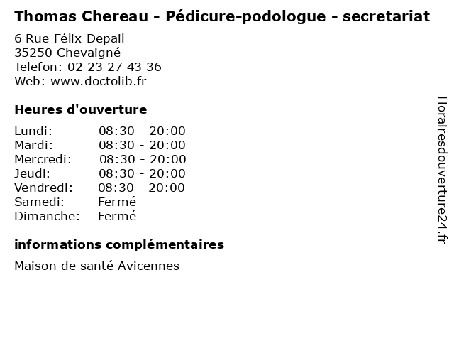 Termes de recherche pour Thomas Chereau - Pédicure-podologue - secretariat:thomas, medecine, medical, secretariat, traitement, médecin, pharmaceutique, podologue, pédicure, chereau |