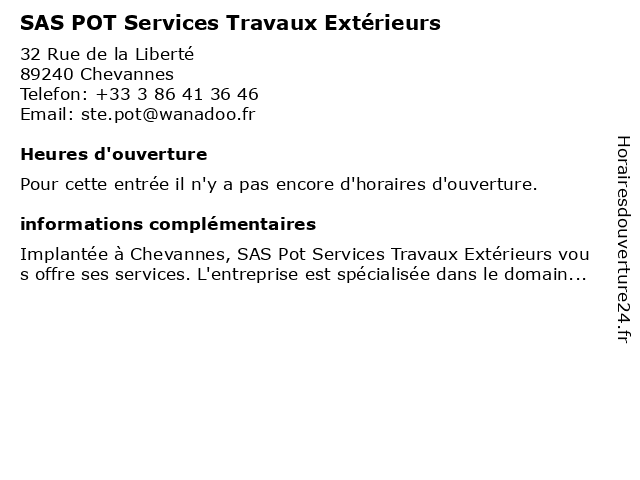 | Appeler SAS POT Services Travaux Extérieurs | |