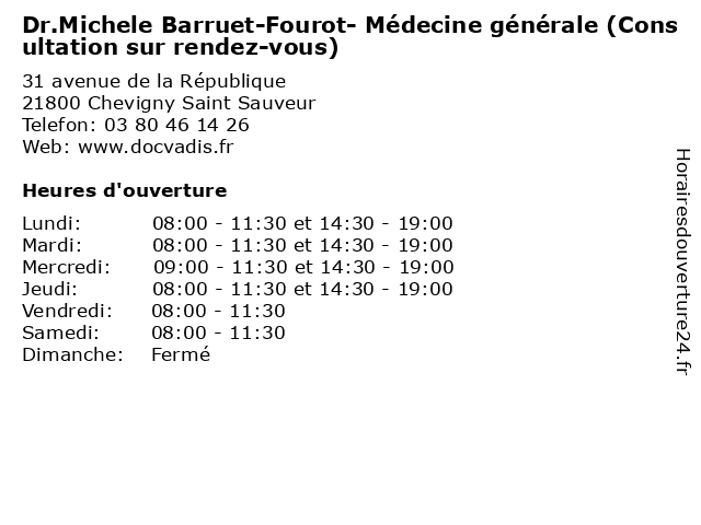 | Mercredi | 09:00-11:30 et 14:30-19:00 |