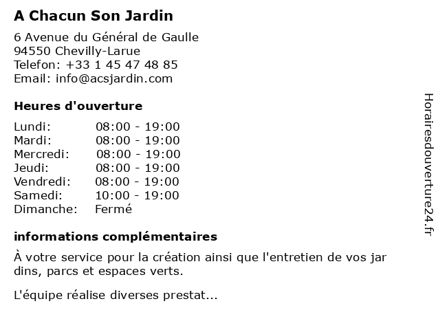 | Lundi | 08:00-19:00 |