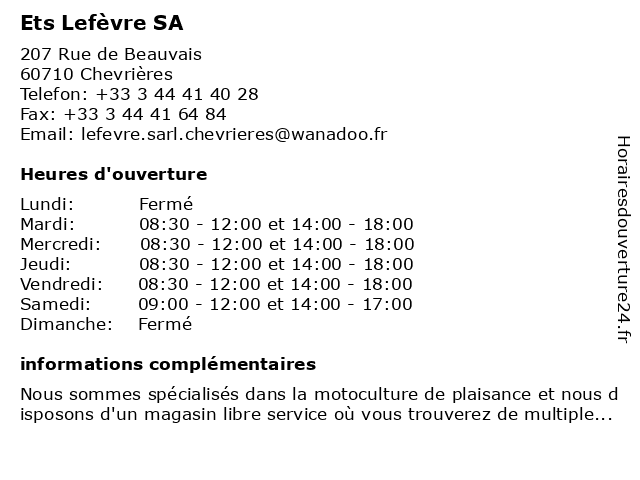 | Lundi | Fermé |