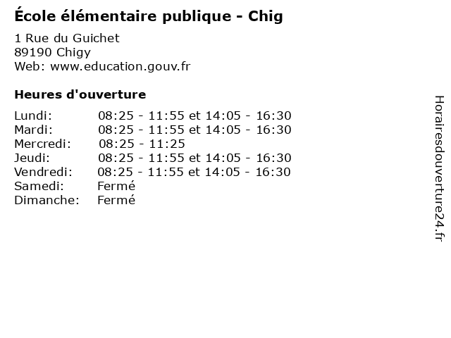 | Mardi | 08:25-11:55 et 14:05-16:30 |