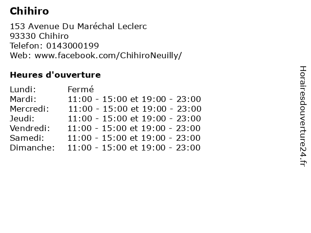 | Mardi | 11:00-15:00 et 19:00-23:00 |