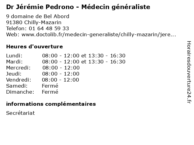 | Mardi | 08:00-12:00 et 13:30-16:30 |