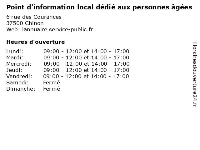 | Mardi | 09:00-12:00 et 14:00-17:00 |