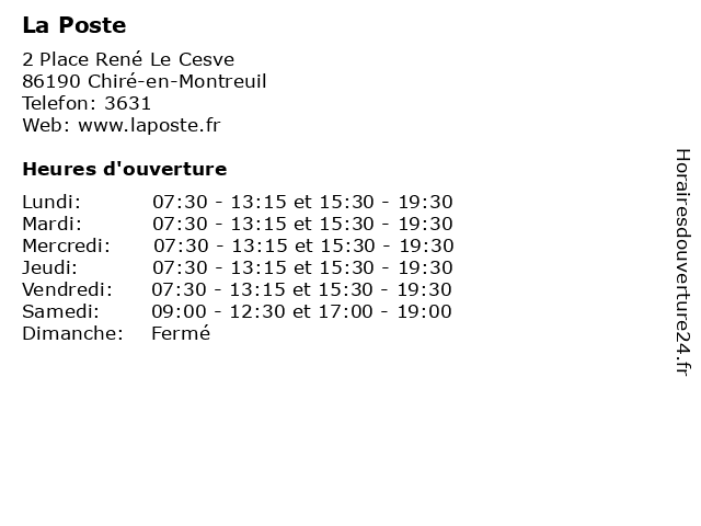 | Samedi | 09:00-12:30 et 17:00-19:00 |