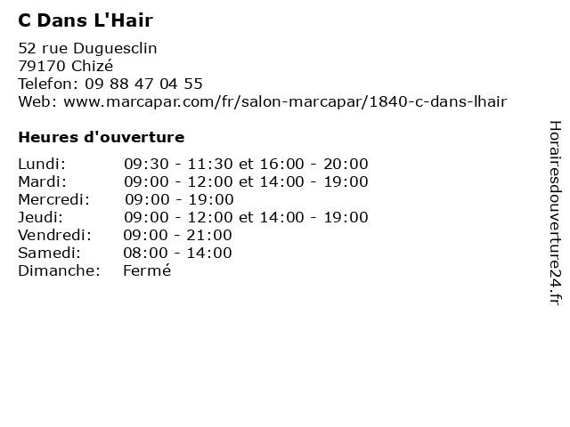 | Mardi | 09:00-12:00 et 14:00-19:00 |