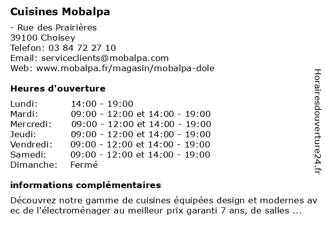 | Mercredi | 09:00-12:00 et 14:00-19:00 |