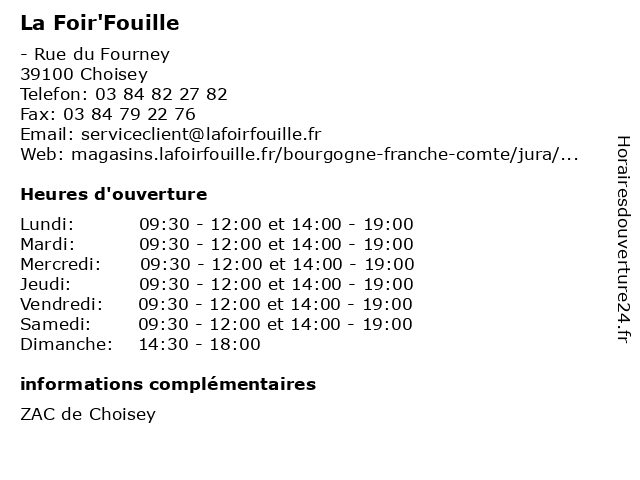 Lundi | 09:30-12:00 et 14:00-19:00 |