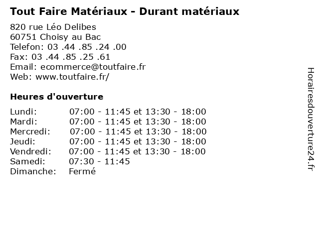 | Lundi | 07:00-11:45 et 13:30-18:00 |