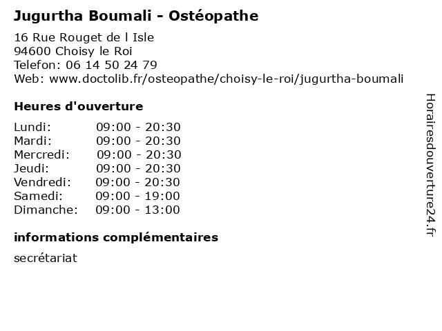 1 Le Jugurtha (Distance: 9,09 km) 60 Rue De La Tombe Issoire, 75014 Paris cuisine, jugurtha, le, menu, restaurants 2 Mehdi Boumali - Psychologue (Distance: 11,59 km) 218 Bis Rue des Pyrénées, 75020 Paris boumali, folie, mehdi, psychiatre, psychiatrie, psychiatrique, psychologue 4 Bertrand Millet - Ostéopathe (Distance: 0,19 km) 10 Avenue Léon Gourdault, 94600 Choisy-le-Roi actes et symptômes, bertrand, dysfonctionnement temporo-mandibulaire dtm, expertises, millet, ostéopathe, ostéopathie de la femme enceinte 5 Mathieu Mogade - Ostéopathe (Distance: 0,50 km) 4 Avenue Anatole France, 94600 Choisy-le-Roi actes et symptômes, expertises, mathieu, mogade, ostéopathe, ostéopathie viscérale, posturologie 6 Philippe Talon - Ostéopathe (Distance: 1,11 km) 137 Avenue Anatole France, 94600 Choisy-le-Roi actes et symptômes, expertises, ostéopathe, ostéopathie du sport, philippe, rééducation oro-faciale ou maxillo-faciale, talon |