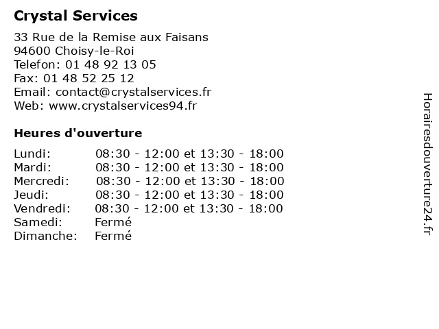 | Lundi | 08:30-12:00 et 13:30-18:00 |