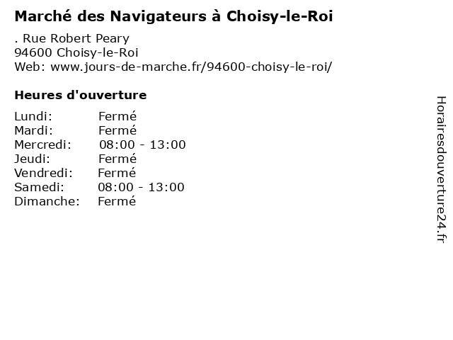 | Mercredi | 08:00-13:00 |