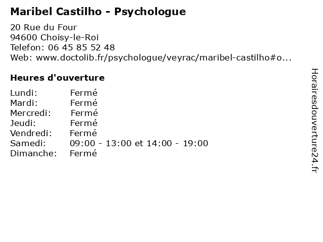 Termes de recherche pour Maribel Castilho - Psychologue:santé, soins, psychologue, psychiatre, psy, castilho, maribel |