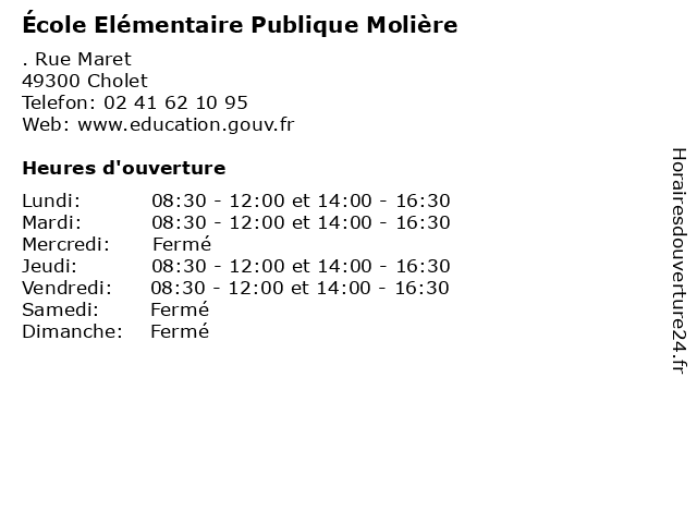 | Mardi | 08:30-12:00 et 14:00-16:30 |