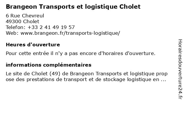 | Appeler Brangeon Transports et logistique Cholet | |