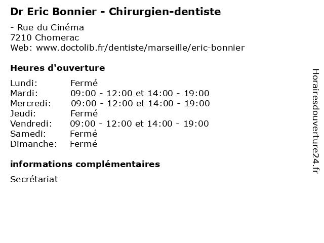 Mardi | 09:00-12:00 et 14:00-19:00 |
