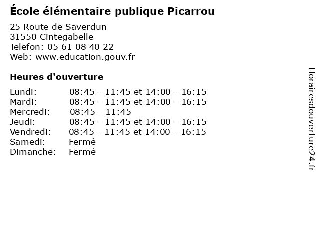 | Lundi | 08:45-11:45 et 14:00-16:15 |
