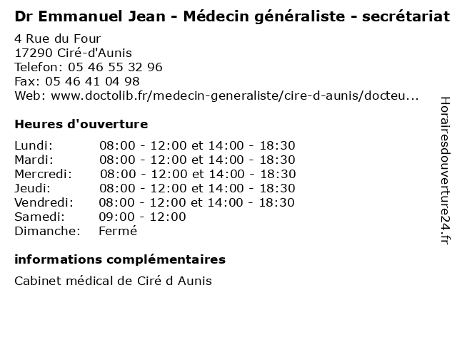 | Lundi | 08:00-12:00 et 14:00-18:30 |