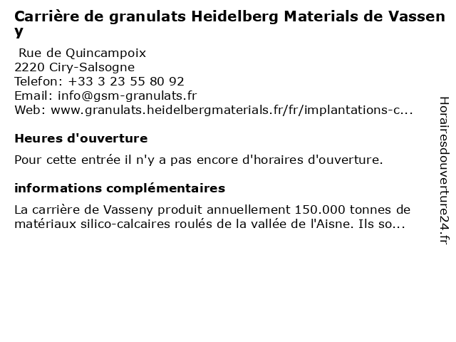 | Appeler Carrière de granulats Heidelberg Materials de Vasseny | |
