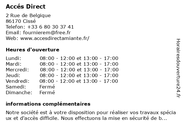 | Lundi | 08:00-12:00 et 13:00-17:00 |