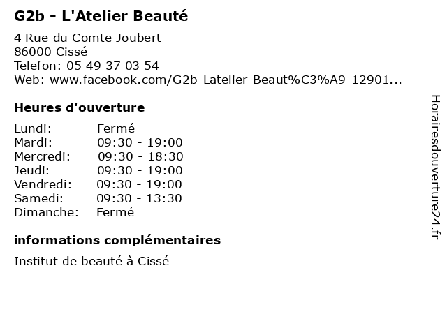 | Samedi | 09:30-13:30 |