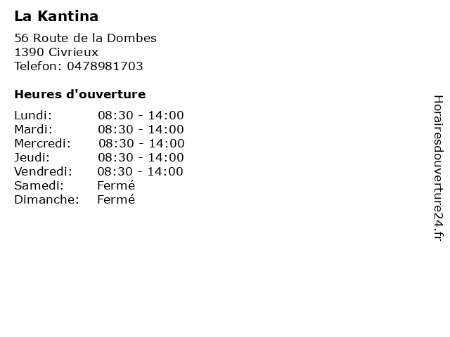 | Lundi | 08:30-14:00 |
