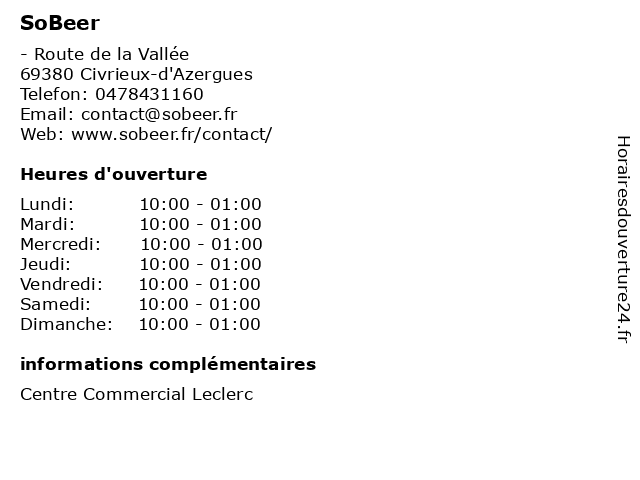 | Samedi | 10:00-01:00 |